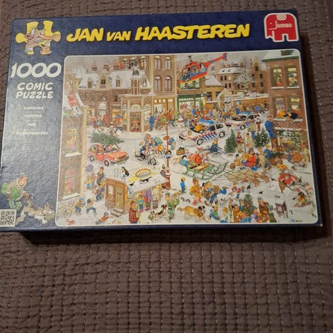 Jumbo Jan van Haasteren Comic Puzzle med 500 bitar. Pusslet föreställer en tecknad vinterscen med många figurer och aktiviteter.