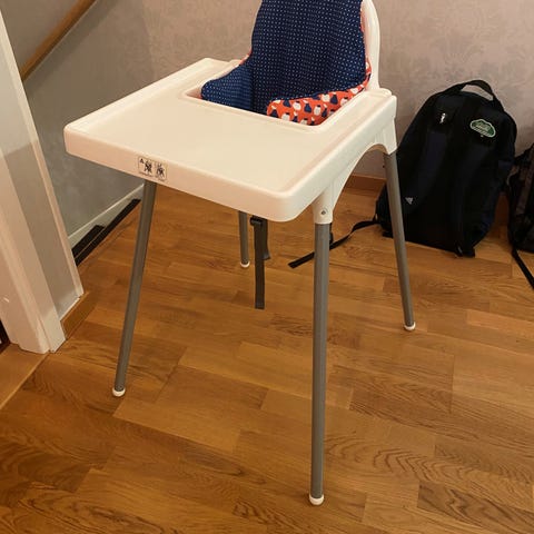 Barnstol ANTILOP från IKEA I bra skick. Stöddyna med överdrag ingår. Dock inget säkerhetsspänne.
