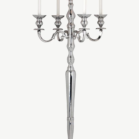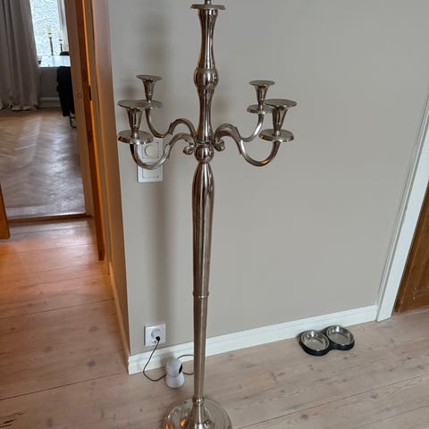 Stor och pampig golvkandelaber i klassisk stil med fem ljushållare. Ger ett varmt, stämningsfullt ljus och passar perfekt i vardagsrum, sovrum eller hall för en lyxig och tidlös känsla.