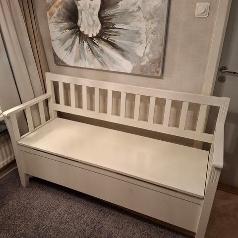 Fin kökssoffa vit med snyggt bruksslitage i färgen. Dyna ingår.