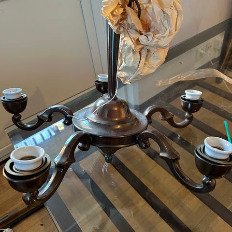 Fin lampa i ett trevligt skick. Varit i mina ägor sedan nyköp. Komplett med ljuskällor, dock ej kontrollerat att varje lampa fungerar då den ej varit monterad på ett bra tag. Finns att hämta på Södermalm i Stockholm.