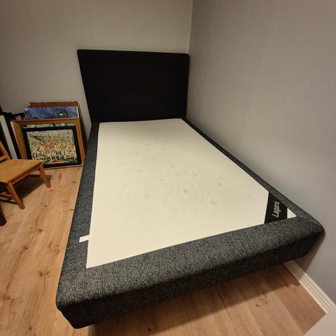 Sängen har en utdragbar låda under för extra förvaringsutrymme. Passar perfekt för enkelrum eller mindre utrymmen där både sovplats och förvaring behövs. Sängen är några år gammal men stommen fortfarande i gott skick med undantag för några stötmärken (se bild).