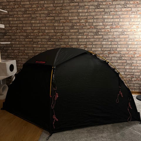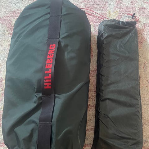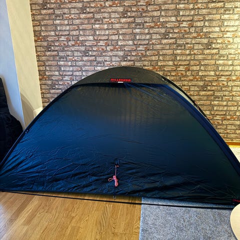 Obs: har lyckats göra en liten reva i tältet (se bild), enkelt att laga med lagningskit!