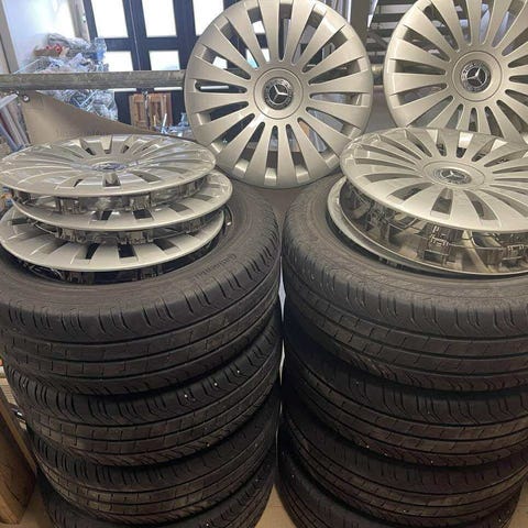 Säljer här 2 st uppsättningar vinterdäck och fälg som har suttit monterade på bakhjulsdrivna Mercedes vito 116 från 2021. Däcken har knappt några dubb kvar men går nog en säsong till. Fälgarna har diverse skav och saltskador. Prisidé 1000kr/set om 4st.
