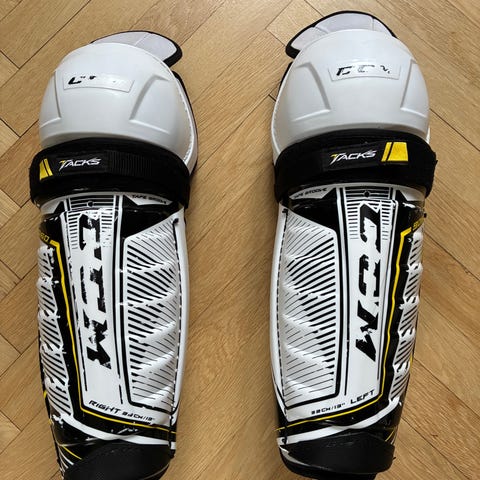 Bauer Supreme benskydd som förmodligen passar någon som är ca 114 - 140 cm lång och med smalben som är ca. 20 - 23 cm.