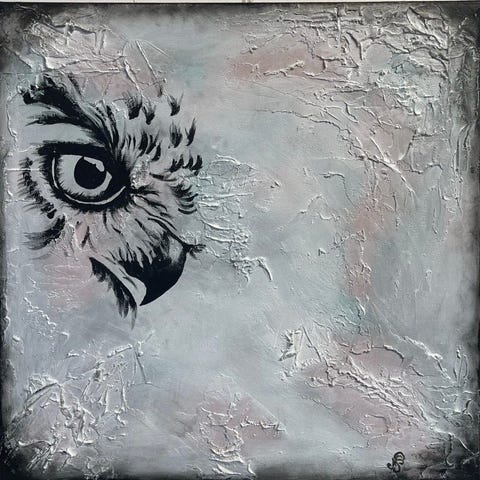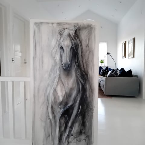 Leopard - Målning i akryl . Konstverket har en färgpalett med gula, svarta och vita toner. Redo att hängas. Originalmålning av Stjernkvist Art.