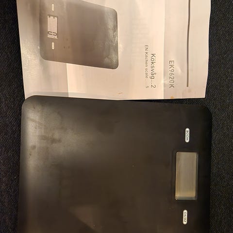 Sibel Digital köksvåg i svart färg. Elektronisk våg med digital display för exakt vägning av ingredienser i köket.