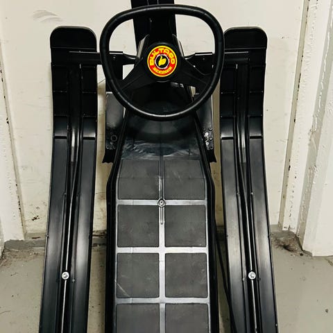 Säljer två Snowracer Stega, en gul och en röd.