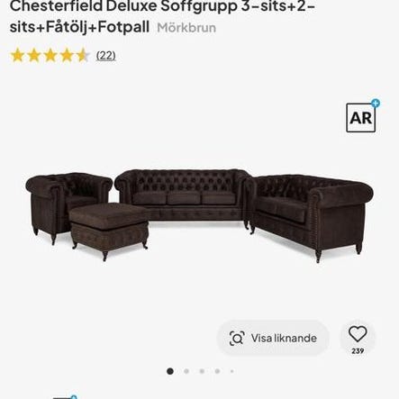Väldigt väl skötta soffor i bra kvalité vi har haft i många år. Sofforna är gästsoffor med högre ryggstöd och kortare sittyta men är väldigt bekväma och mjuka.