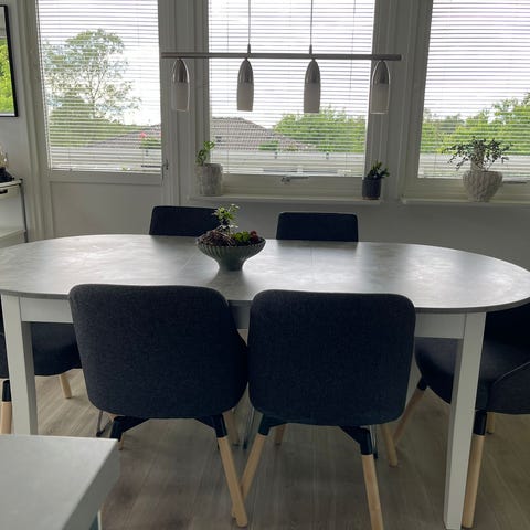Ett flexibelt och tåligt matbord med underrede i rostfritt stål.