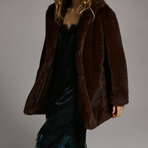 H&M vintage polyester lång kappa . Fuskpäls , Finland S