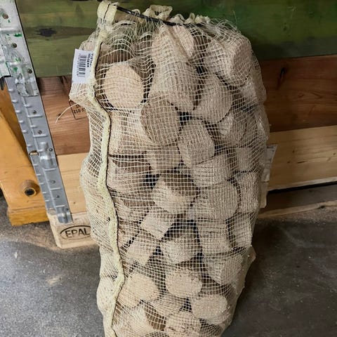 Briketter kommer från egen tillverkning, diameter 60 mm.