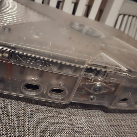 Xbox Crystal med alla kablar och två kontroller, inte moddad eller dylikt.