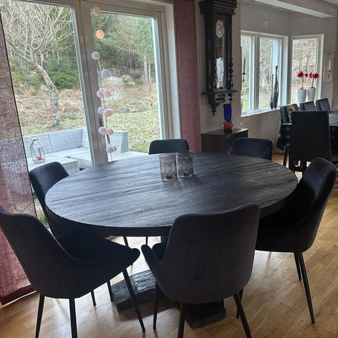 Säljer ett mycket elegant runt matsalsbord i klassisk stil med 4 tillhörande stolar, för dig som uppskattar tidlös design och gediget hantverk.