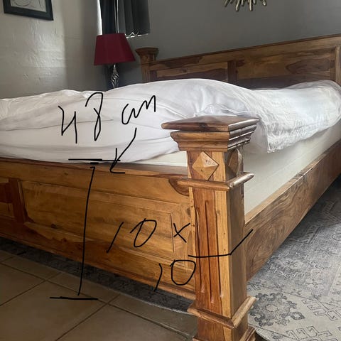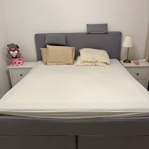 Denna vackra och bekväma säng med huvudgavel mäter 180x200 cm. Sängramen säljs, men madrasserna ingår inte. Sängen har använts men är i mycket gott skick. Sängen är för närvarande demonterad. Om du vill ha fler bilder eller vill se den, vänligen kontakta mig.