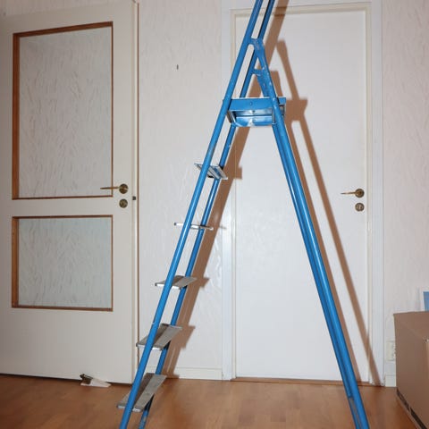 Gedigen gammal trappstege i trä med 6 trappsteg 122 cm hög. Har använt den som blomtertrappa för krukväxter. Kan skicka den.