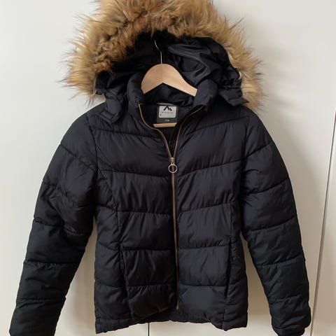 En härlig present till vår flicka – knappt använd! McKinley-märke från Intersport. Den har en bekväm vid huva och mjukt, tjockt dunmaterial. Storlek 146 / 152. Varm beige färg.