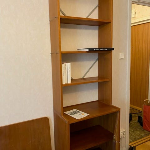 Hyllan är inte djup och tar lite rum i från rummet och har totalt 12 st hyllplan varav 10 kan ändras i höjd och mått.