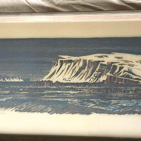 Fin signerad färglitografi med motiv från söder Stockholm. Viss gulnad, lite skavanker på ram.