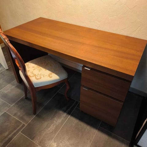 Rymligt skrivbord hurtsarna i trä ingår om man vill.
