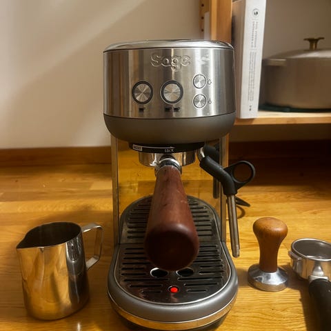 Sage Bambino mattsvart manuell espressobryggare. Oanvänt demoex. Nyskick förutom pytteliten bula vänster sida, se bild.