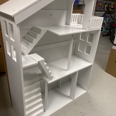 Fin vit hushylla / dockhus / bokhylla från Alice & Fox. Skruvhål på taket som går att spackla och måla över. Något litet skrapmärke, men annars i bra skick.