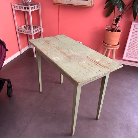 Antik Matgrupp Bord och Stolar i Trä med Ljus Klädsel