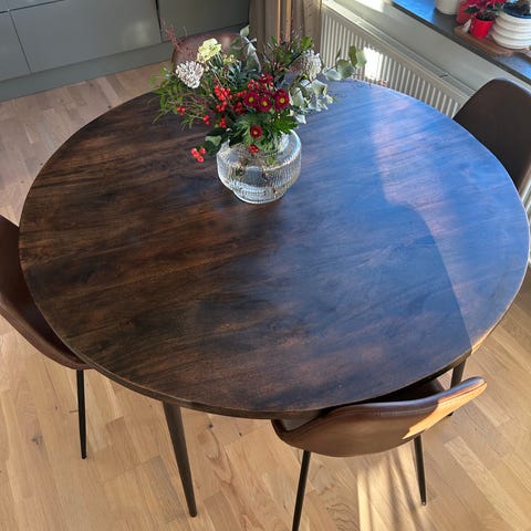 Vid köp kom den med en transportrepa som är lagat hos snickare.
