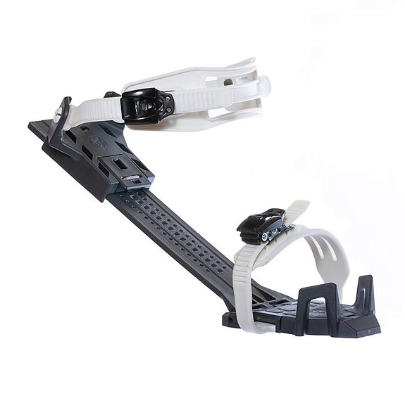 Kort och bred skida med skins. Perfekt när det är mycket snö men du ändå behöver vara smidigare än med långa skidor.
