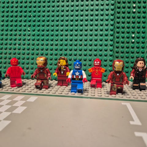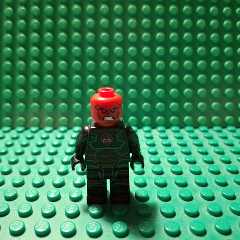 LEGO Marvel figur av karaktären Venom i svart med vita detaljer. Figuren är byggd av LEGO-klossar och har rörliga leder för olika poser.