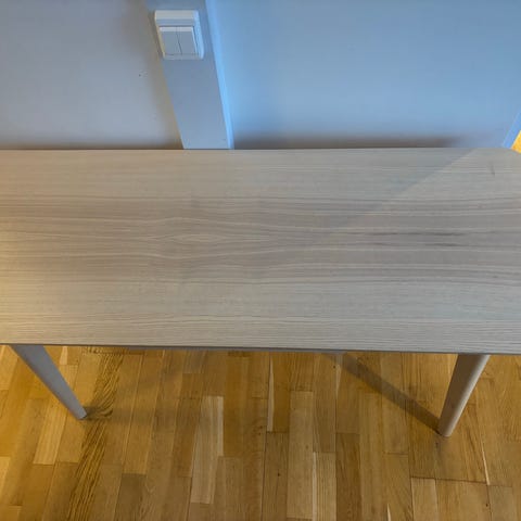 Jag säljer mitt vackra, eleganta skrivbord. Det har två utdragbara hyllor. Det finns några repor på höger sida, men inte på ovansidan.