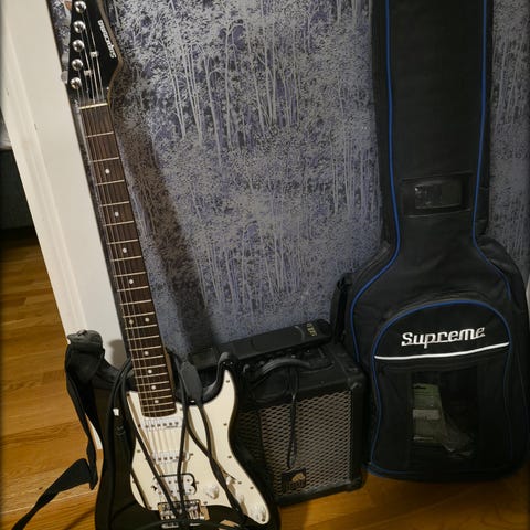 Säljer ett komplett elgitarrpaket som passar perfekt för nybörjare, ungdom eller som present.