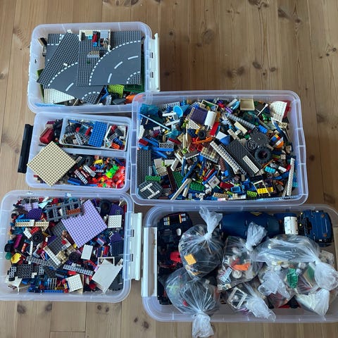 Blandat lego där några figurer är halvklara eller ej hela men allt finns i lådan och har sparade kartonger och instruktionsböcker till det mesta. Finns flera större figurer, huvuden, skepp etc från Minecraft, Starwars, Marvel etc.