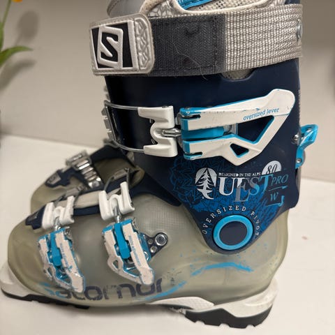Skidpjäxor från Salomon i orange/svart. Bra passform och komfort med tre justerbara spännen + powerstrap för stabilitet. Passar både pist, park och offpist. Välanvända men i bra skick – allt fungerar som det ska.