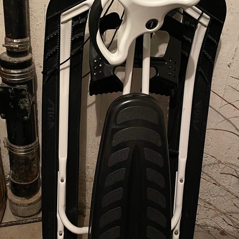 Lite rost på bromspedalen och lite sliten sits. Men fullt fungerande snowracer.