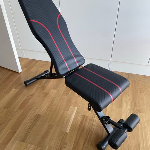 Bänken är justerbar, har Maxvikt 200 kg och är mycket stabil. Helt oanvänd. Nypris 2600 kr. Skivstången kan skruvas isär vid transport. Skivstång, hantlar och vikter har total vikt ca 70-80 kg. Är mycket snygga i metallic när står framme. Nypris ca 3500 kr. Allt är i nyskick!