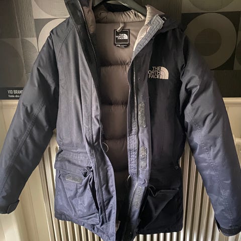 The North Face vinterjacka för kvinnor i storlek M, färg blå. Jackan är designad för vinterbruk och erbjuder skydd mot kyla och väder. Praktiska fickor, ventilationskanaler, justerbar huva och med snökjol (snölås).