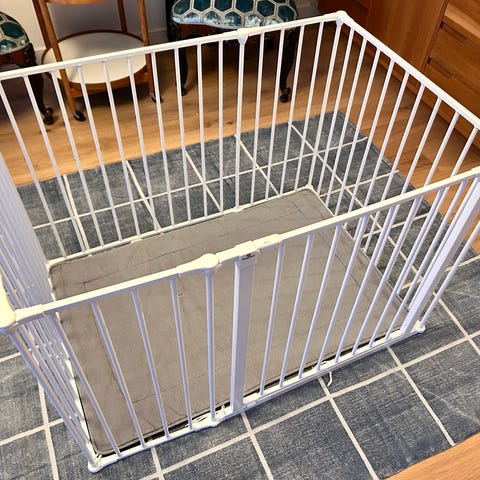 Beskrivning Säljer en klassisk och robust lekhage från kvalitetsmärket BabyDan. Detta är den populära femkantiga modellen i vitlackerad metall som erbjuder en trygg och säker miljö för ditt barn att leka i. Tack vare sin flexibla konstruktion är den enkel att placera i hemmet och ger föräldrar en välbehövlig avlastning i vardagen.