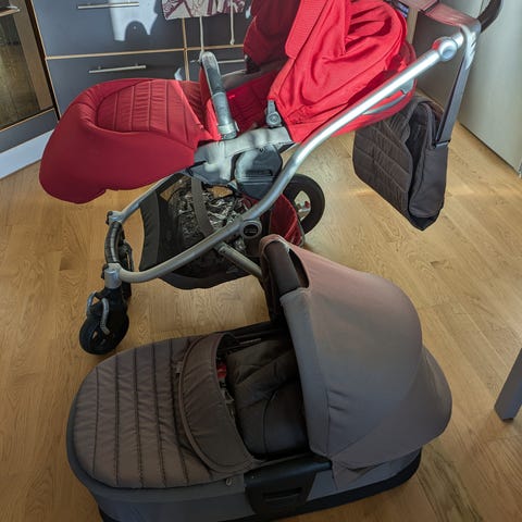 -Suffletten (för extra solskydd) är knäckt, men går att använda.