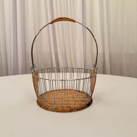 En vacker korg i flätad rotting i bra storlek är alltid en snygg inredningsdetalj. Fungerar perfekt för förvaring eller att sätta en kruka i. Min farmor hade sin stickning i den.
