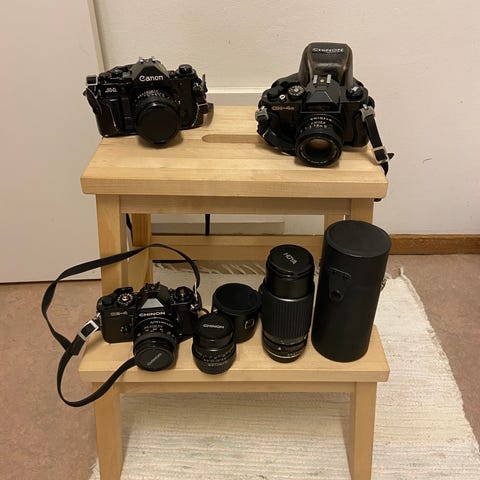 Analog kamera med 3 objektiv, blixt, telekonverter 2x, extension Tube