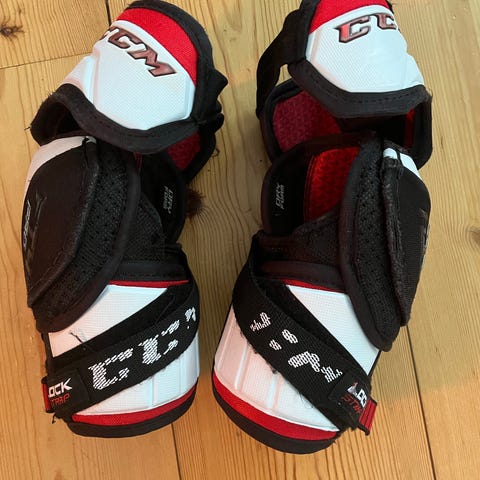 CCM FT350 JR Large. Har justerbara remmar för bra passform. Avsedda för juniorspelare.