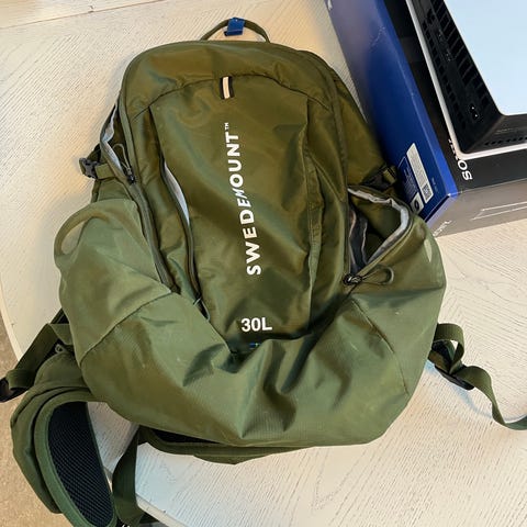 Säljer en ryggsäck från Biltema med inbyggd pall/stol.