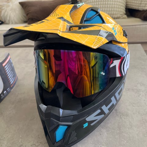 För dig som vill köra moped i stil! Här säljer jag ett helt komplett crosskit med all utrustning man behöver: hjälm, goggles och handskar. Användes endast under våren och sommaren 2023 då mopeden aldrig kom till särskild användning. Allting som säljs är i nyskick. Kvitto finns.