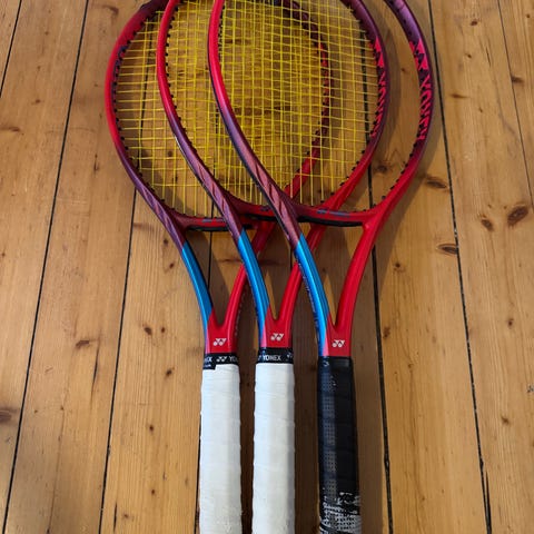 YONEX EZone 98 (305 g) 2025 års modell i blått. Endast spelad med några få timmar. Nysträngad samt ny vit överlinda. YONEX Ezone-modell med den s.k. ISOMETRIC-formen som är känd för att kombinera kraftfullhet med en stor sweetspot som gör att racketen är snäll mot armen. Ordinarie nypris ca €280