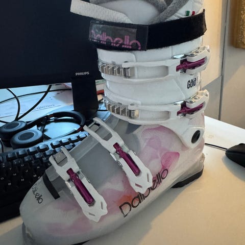 Dalbello DRS 55skidpjäxor i svart och röd färg. Utrustade med fyra spännen och justerbar rem för bra passform. Skidpjäxorna är avsedda för alpinskidåkning och har en slitstark sula för stabilitet och grepp.