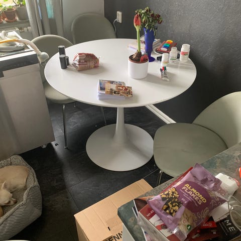 Köpta 2020 och varsamt använda. Det kan finnas någon enstaka mindre fläck på någon stol, som troligtvis går att få bort.