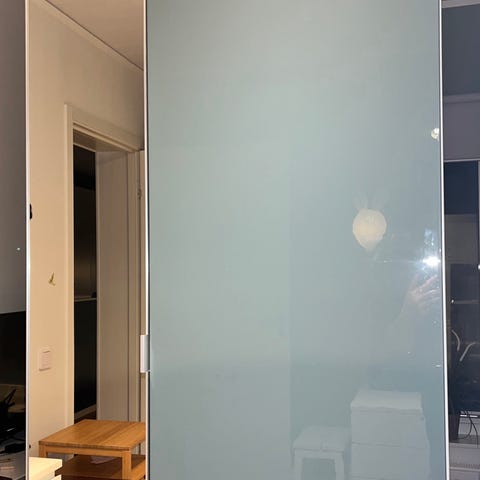 IKEA pax garderob med spegeldörr. Inklusive inredning enl bild. Spegelglaset sprucket. I övrigt gott skick. Nedmonterad.