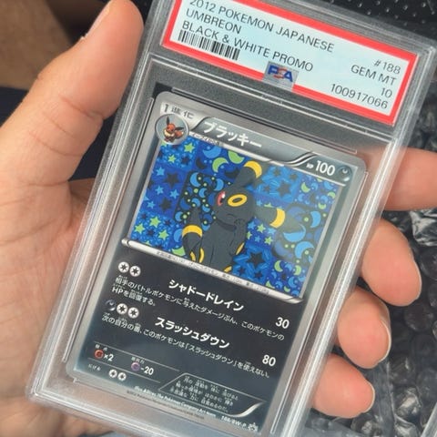 Pokémon VMAX samlarkort graderat av PSA. Kortet är inneslutet i ett skyddande plastfodral för att bevara dess skick. Passar samlare och entusiaster av Pokémon-kortspel.