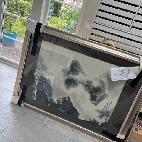 Handmålad på välspänd duk och kan hängas direkt utan ram.